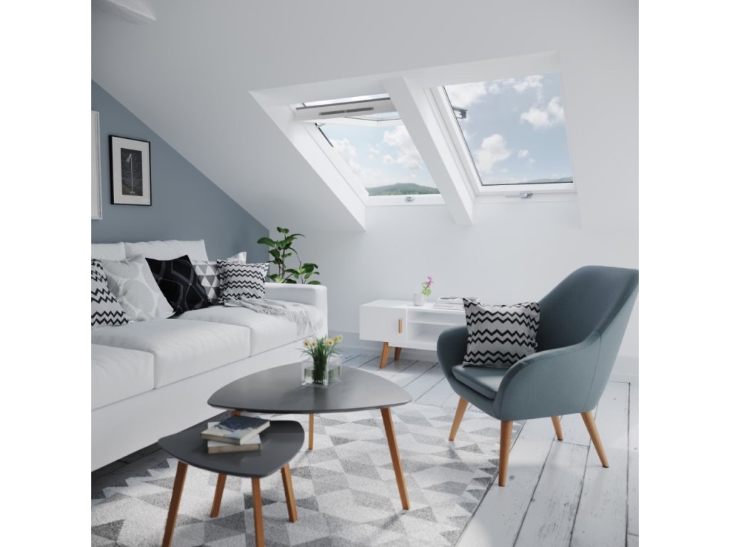 Dřevěné střešní okno BETTER VIEW – výhledové okno s kyvným otevíráním a zvětšenou plochou zasklení. Maximální prosvětlení interiéru.