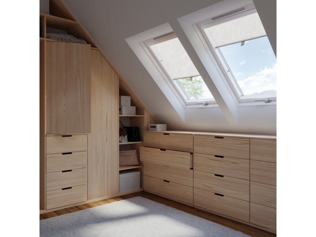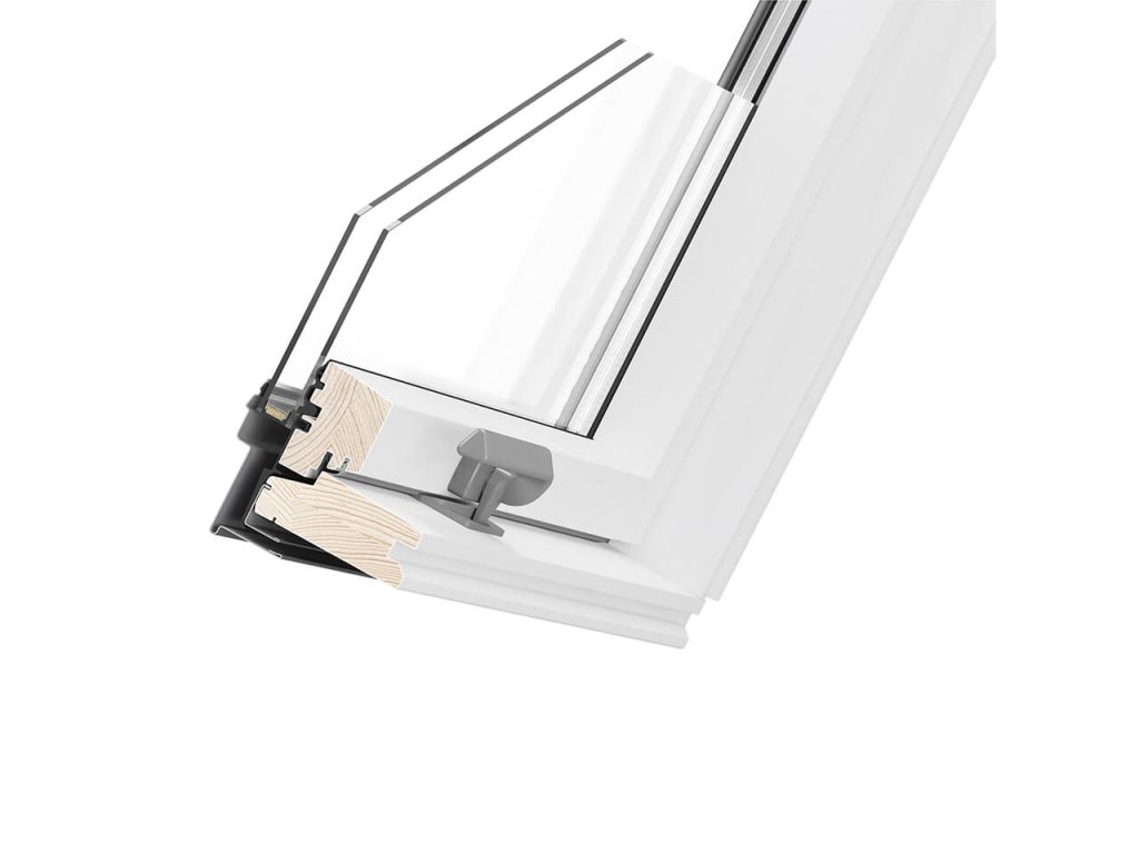 Dřevěné střešní okno GOOD – základní model v ekonomické řadě Dakea. Kyvné otevírání s horním ovládáním. Dvojsklo s nízkoemisivní vrstvou.
